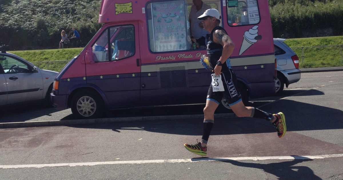 The run at the Erias as I said earlier is flat, but, with a wind it can be quite challenging. As I set off the wind was on my back. This made for a fast start and got the legs turning really well. I was probably about a mile and a half into the lap when I say a female athlete coming the other way at a good lick. I looked and she had a 70.3+ number on. My thoughts were simple and looking back a little dismissive/rude. 'Relay team"! and with that I dismissed her position in the race and got on with mine. At the first turn around I had moved up to forth and just before the six mile turn around point I saw my next target looking pretty sore to say the least. Mind games time.